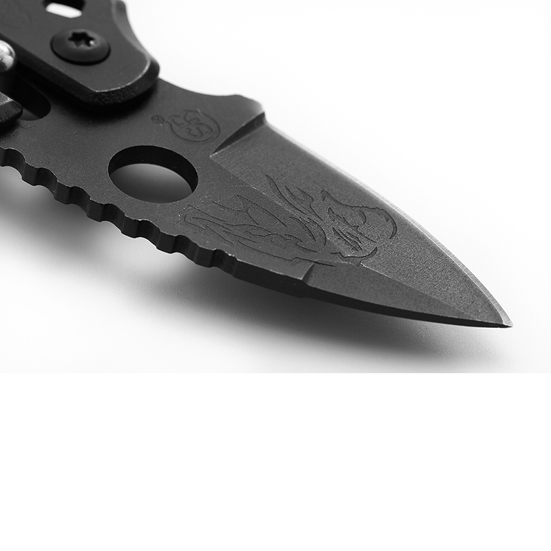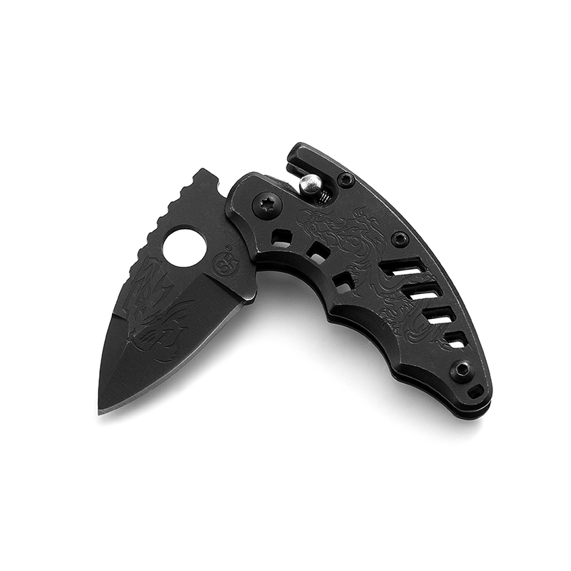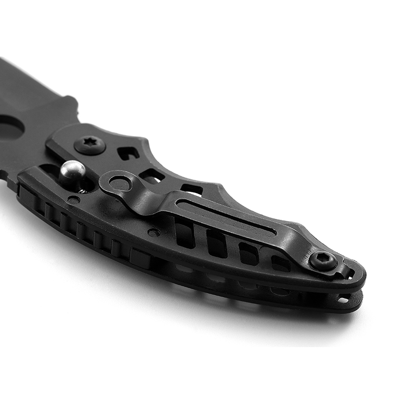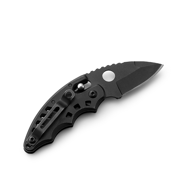 AYO-219B Black tactical folding knife with ventilated handle design