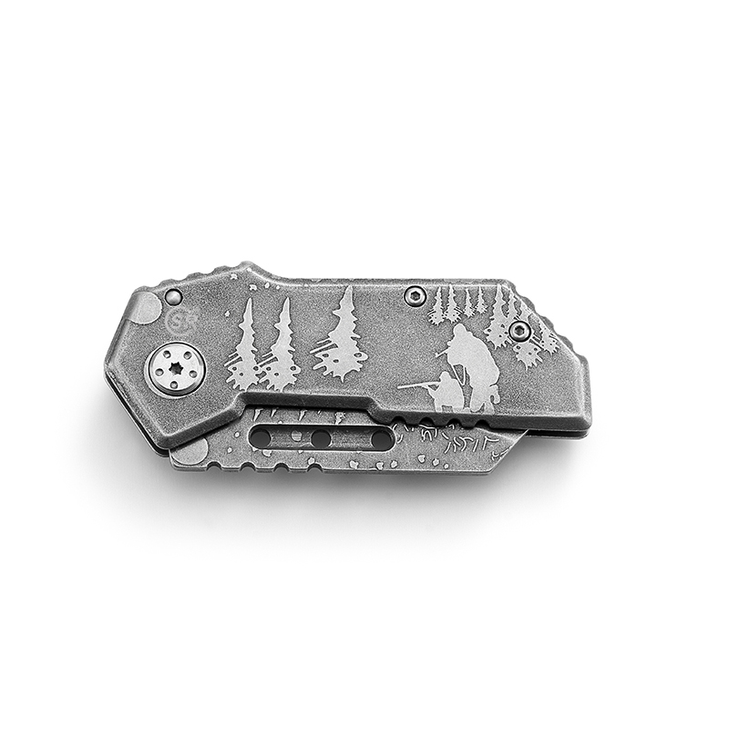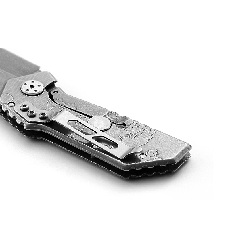 AYO-288D Engraved stainless steel folding knife with artistic wildlife design
