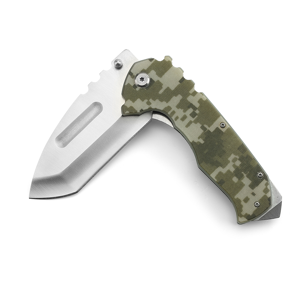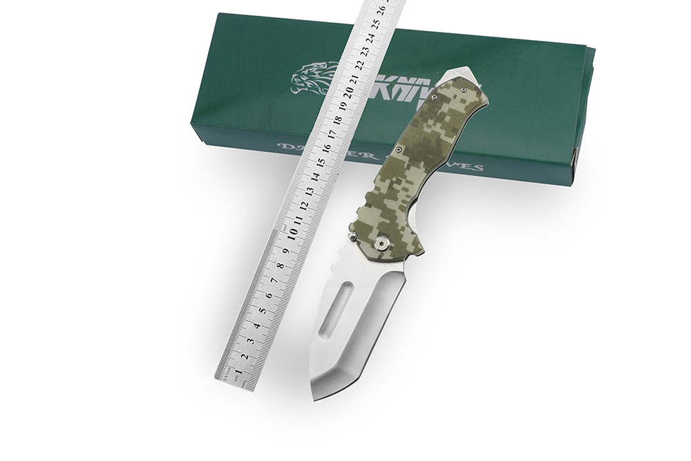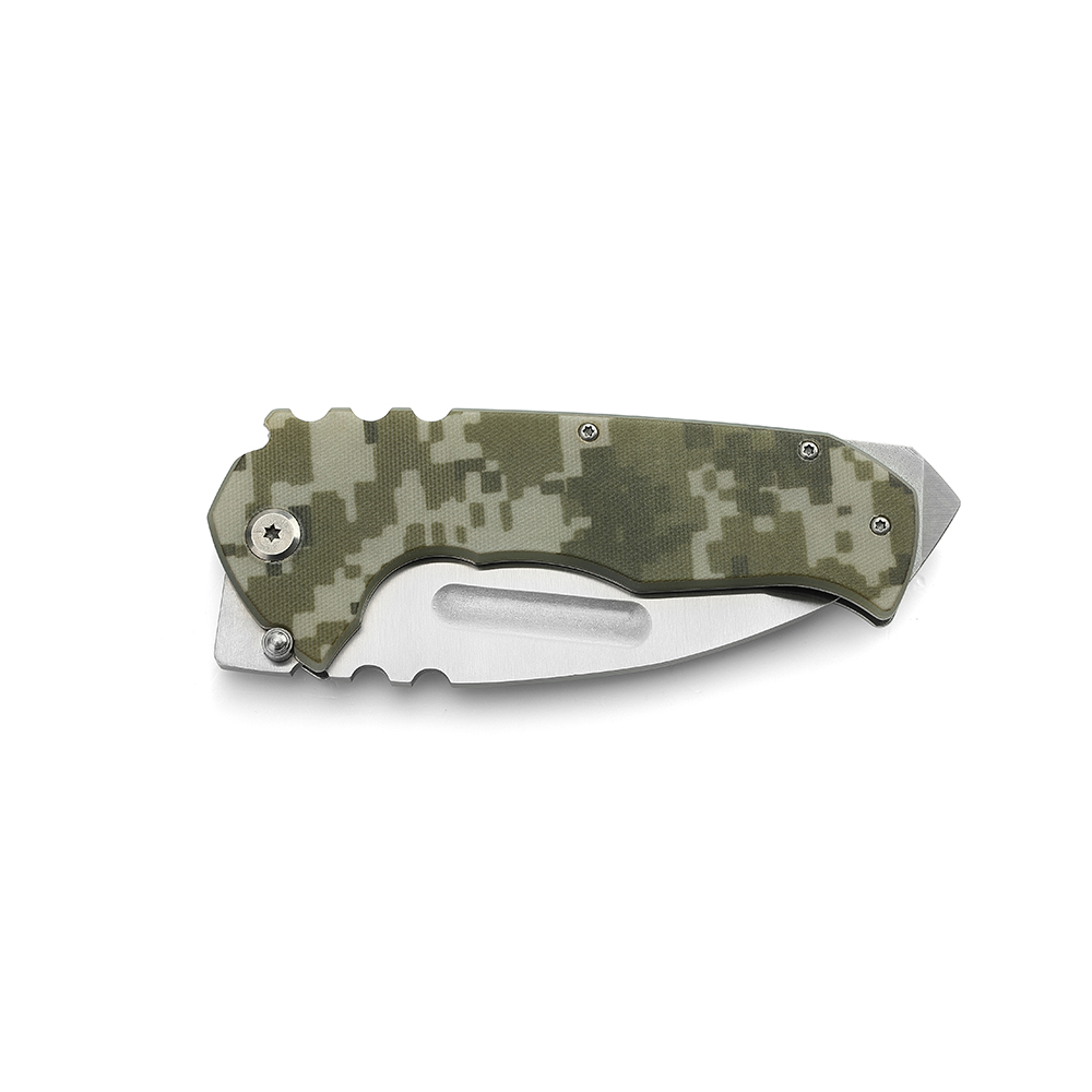 AYO-590A_Tactical folding knife with camouflage handle and wide tanto balde