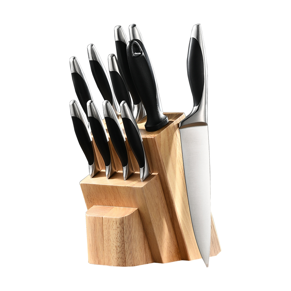 AYO-BH07AB 12 pieces ABS handle kitchen knife set with natural wooden block