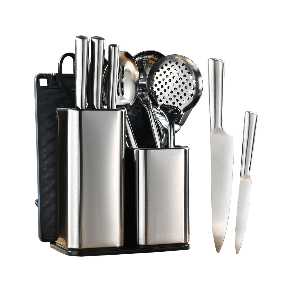 AYO-BH29OR 15PCS stainless steel kitchen knife set with stainless steel holder and six pcs kitchen utensils