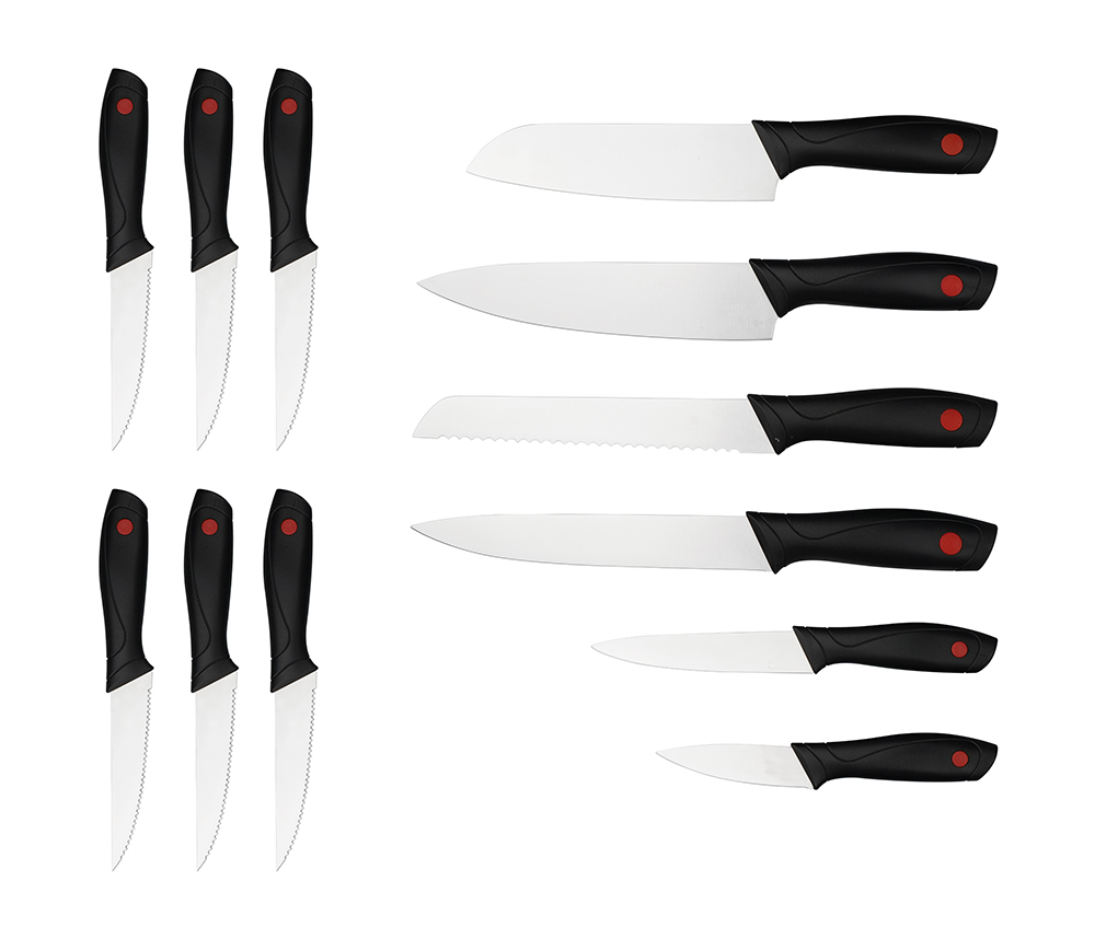 AYO-D46 New Design Stainless Steel Kitchen Knife Set 15-Pieces Kitchen Chef Knife with plastic handle