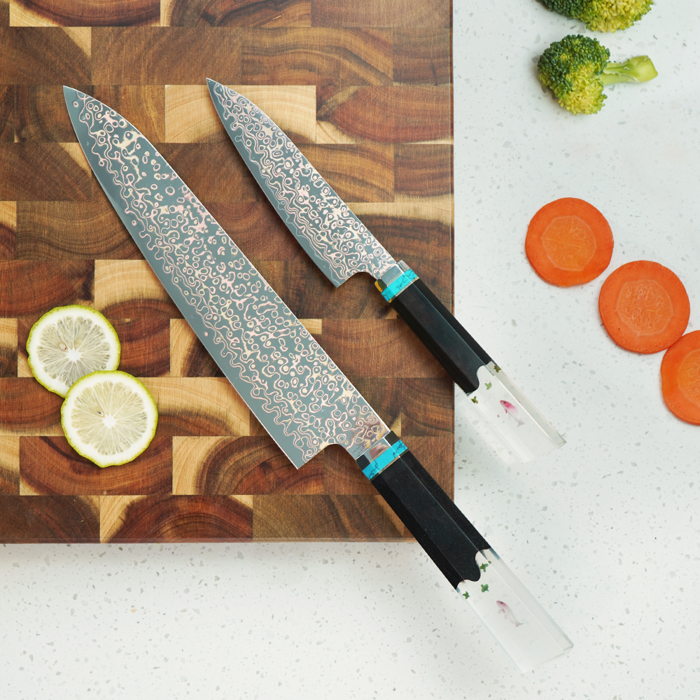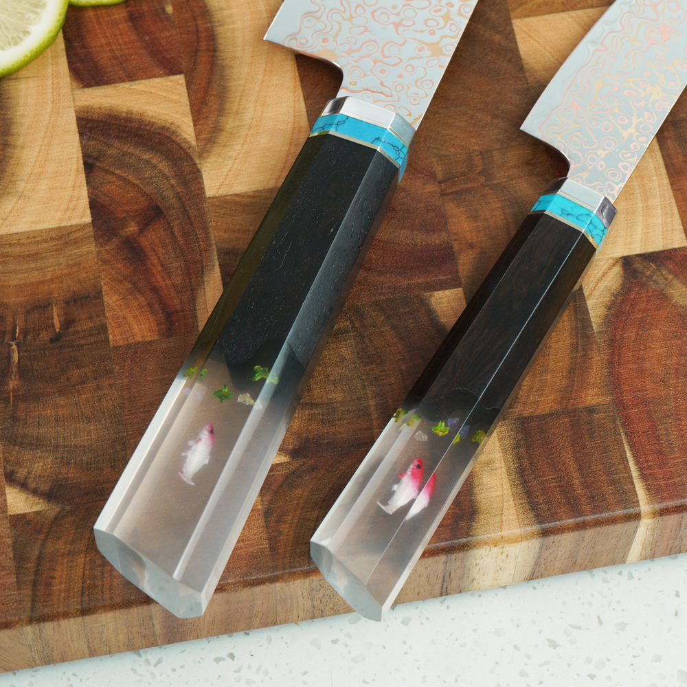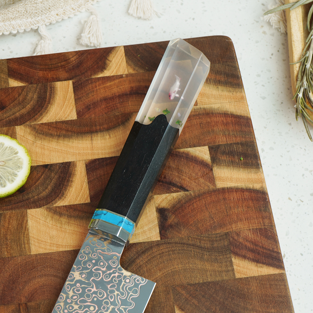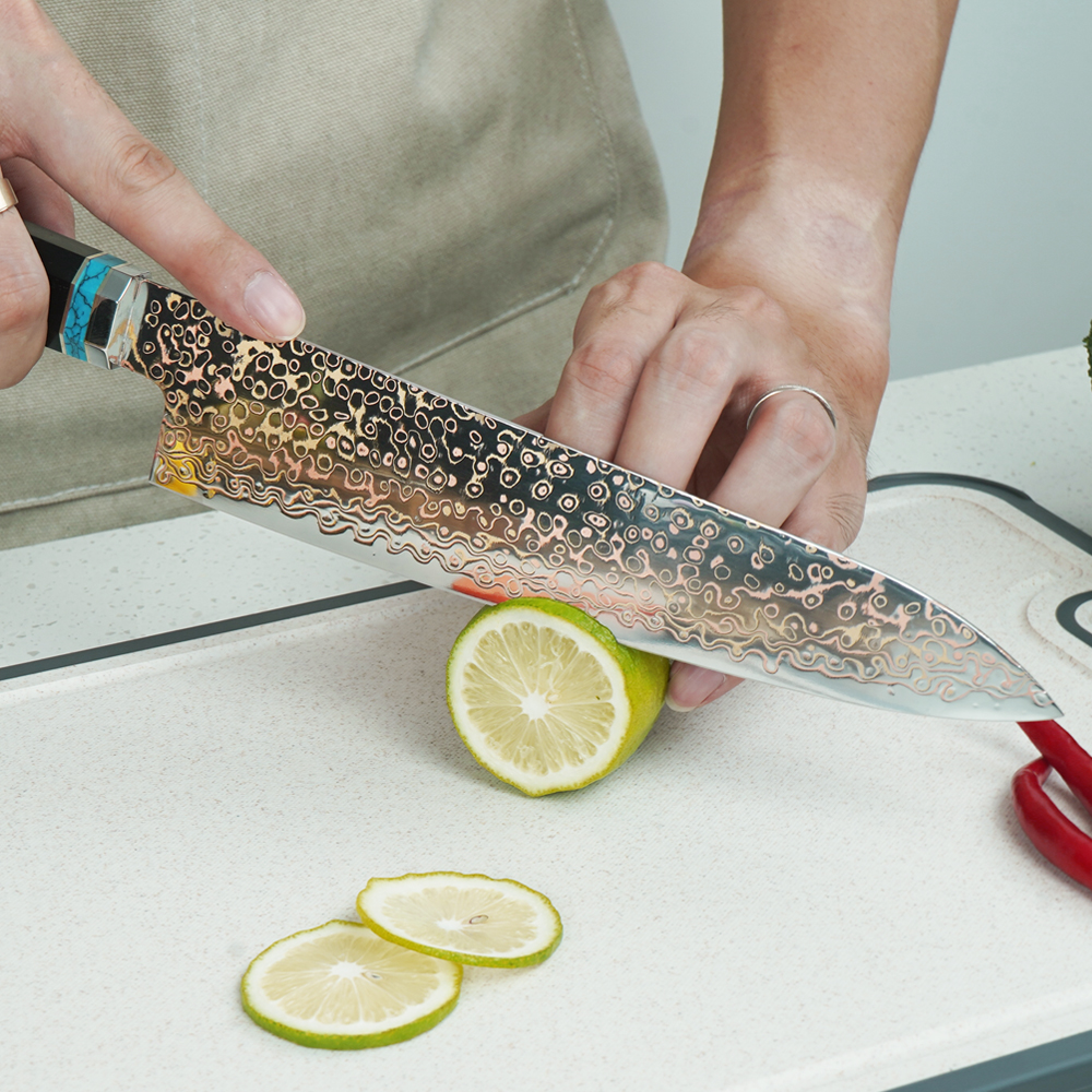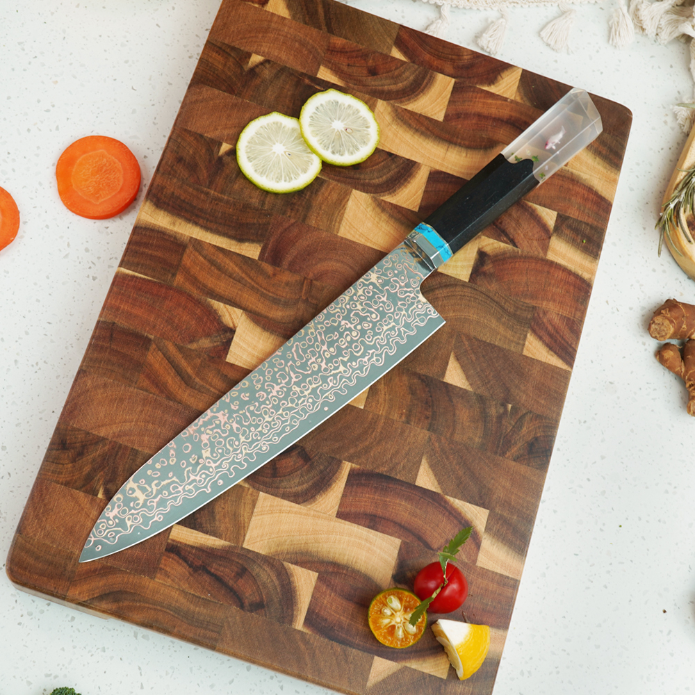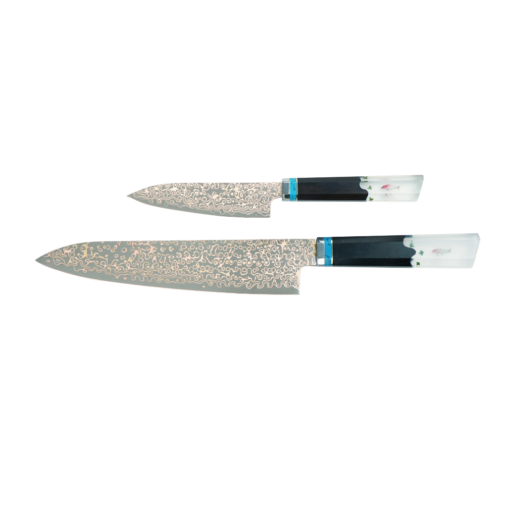 AYO-JDH08-HT-Chef Copper Damascus Knife